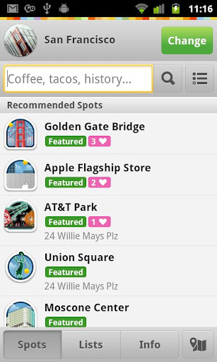 New cities are added weekly. Don't see yours yet? No worries! Our "Nearby Guide" will show you what's hot around the regardless of where you are. Your activity and recommendations will help us create a guide for your city!
